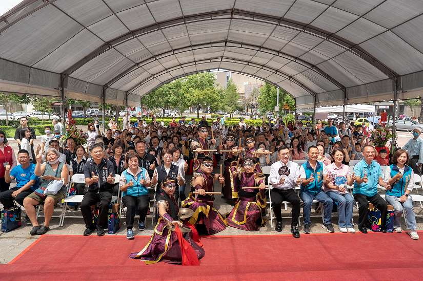 九天民俗技藝團與貴賓及現場民眾大合照-圖/台中市政府提供