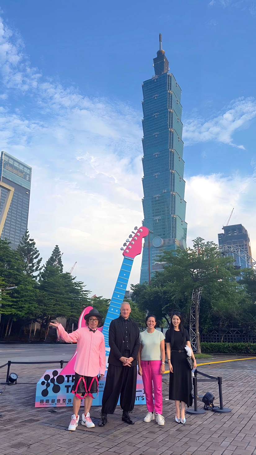 四大國際講者一同在潮臺北電吉他裝置前合影(左起增田賽巴斯汀、Todd Eckert、Sally Davies、Cha Haley-圖/台北市政府提供