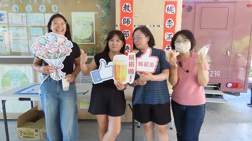 活動當日,香醇的咖啡香氣與輕快的音樂瀰漫校園,教師們三三兩兩前往餐車領取飲品與點心,彼此閒話家常、共享輕鬆氛圍,現場充滿溫暖與感謝的氣息。