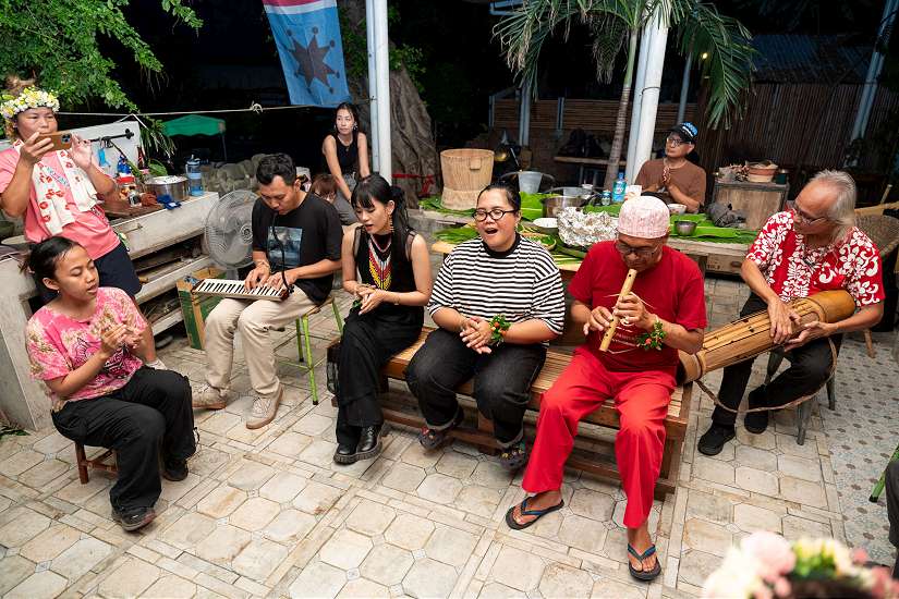 臺東縣政府文化處於音樂人駐村期間,特於就藝會舉辦「南島客廳來坐坐」交流午宴,除了本計畫之4國音樂人,更有「海海臺東.南島誌計畫」斐濟羅圖馬島文學家Vilsoni Hereniko、「2025藝息山海-臺東工藝國際駐村交流」日本陶藝家Masayuki Yamashita、馬來西亞編織工藝家Ireen Tan Cheew Yee、百慕達的織品設計藝術家Jordan Carey,分享彼此藝術創作及島嶼生活的異同,以及對臺東熱情、多元內涵的印象。