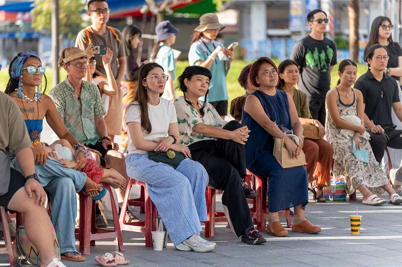 音樂會當天,駐村計畫的3組共創團隊輪番登台,吸引眾多民眾齊聚新生公園廣場,從排灣語吟唱到巽他傳統音樂,從馬達加斯加鼓聲到馬來西亞竹樂,觀眾感受一場跨越語言與地域的音樂旅程,最後的全體合奏,更將不同文化的旋律緊密交織,象徵南島語族的共同根源與未來展望。