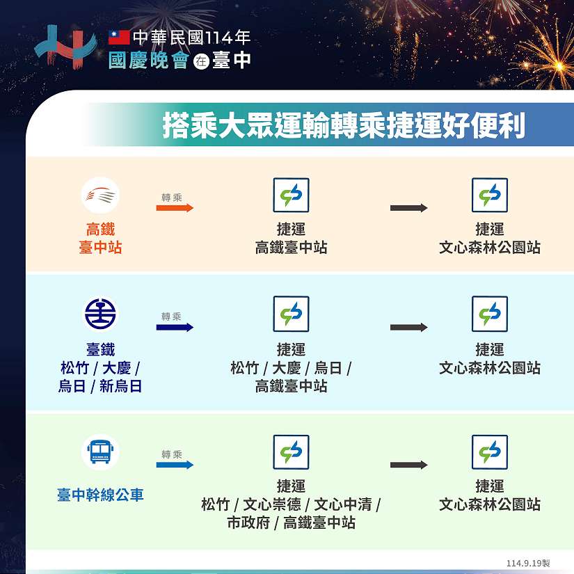 國慶晚會轉乘捷運資訊-圖/台中市政府提供