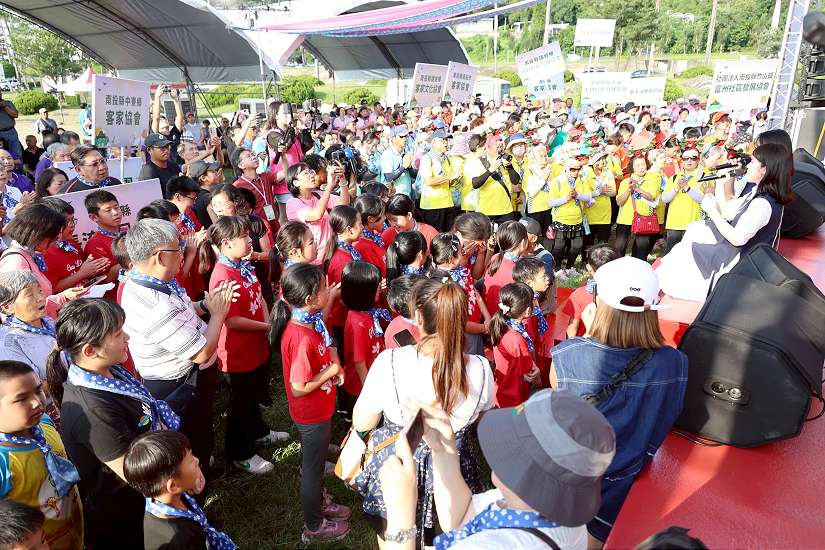 「2025南投縣客家文化節~客在心投」系列活動-草地音樂會5日下午在中興新村親情公園熱情展開,縣長許淑華到場與客家鄉親一同聆聽金曲歌王羅文裕等多位客家歌手美妙歌聲;會中,許縣長與客家鄉親一起進行「千人大合唱」,共同演繹〈十八姑娘一朵花〉與〈客家本色〉兩首經典客家歌曲,並宣告草地音樂會圓滿閉幕。