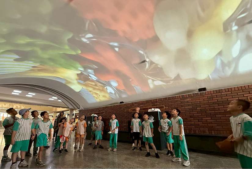 苗栗建中國小學童觀看作品-再見巧克力-圖/台中市政府提供