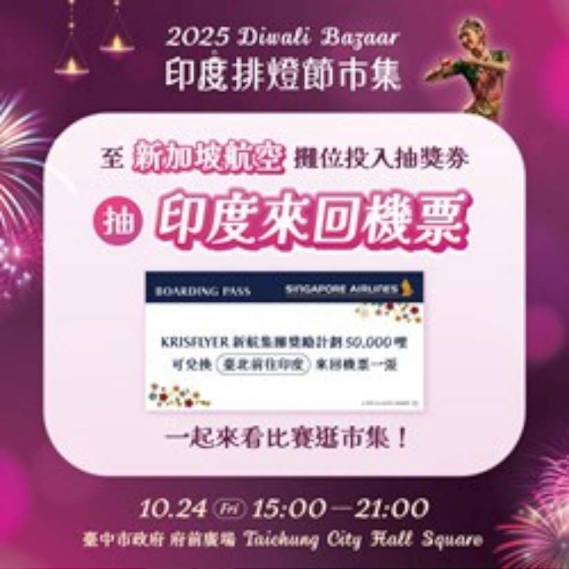 民政局提到,除精彩的舞蹈比賽外,活動當日下午3時起,台中市政府府前廣場將搖身一變為充滿印度風情的節慶市集,設有近30個印度主題攤位,提供道地印度美食、甜點、印度威士忌、Henna手繪、香料、手工藝及文化體驗工作坊等內容,讓市民從多角度感受印度文化的熱情與風采。此外,市集現場還有幸運抽獎活動,最大獎為新加坡航空提供的台北、印度來回機票,邀你親身展開一場精彩難忘的印度探索之旅。