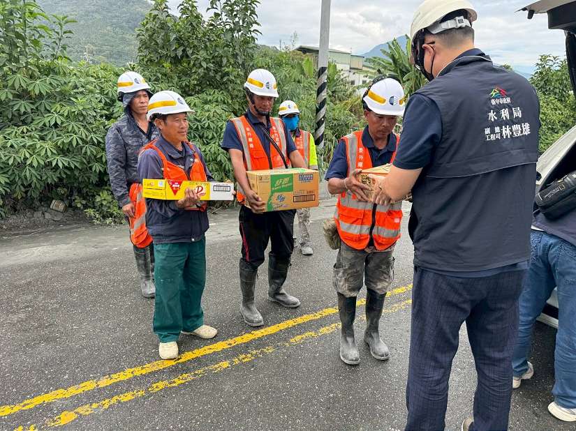 水利局長范世億表示,市府特別重視前線同仁的安全與身心狀況,感謝所有日以繼夜、不畏辛勞付出的超人夥伴,(17)日上午特別請水利局副總工程司林豊雄代表前往災區送上點心、餅乾與瓶裝水等補給品,慰勞第一線救災人員,為奮戰中的隊員們補充體力、提振士氣,讓大家在艱困環境中感受到滿滿的支持與溫暖。