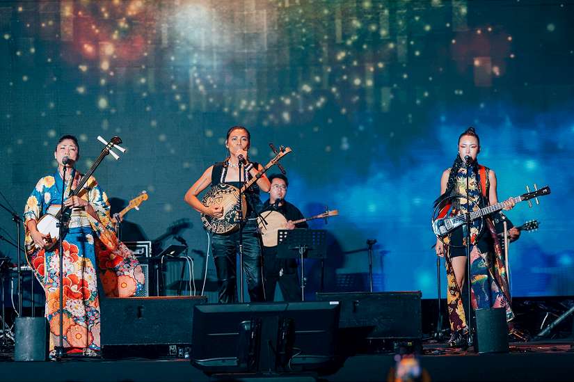 Noriko Tadano帶來津輕三味線的激昂演奏,NINI則以中阮、柳琴、三弦及電琵琶,融合重金屬、搖滾與電子舞曲元素,跨越文化與音樂界限,舞台氣氛沸騰,台下觀眾也嗨翻。