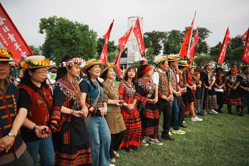 「屏東南島文化節」壓軸活動,昨日在屏東縣民公園隆重登場,今年以「湧動的靜流 Silent Currents, Rising Tides」為主題,48個部落青年領袖邀請縣長周春米、原民會主委曾智勇、立委伍麗華等人共舞,延續屏東收穫祭精神的千人圍舞,場面壯觀,還有藝術展演、工藝市集、生活體驗與名人講座等,打造屏東年度最具代表性的文化盛會。