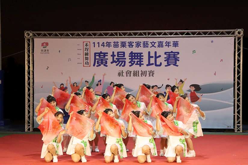 苗栗縣政府9日下午在竹南運動公園籃球場舉辦「114年客家藝文嘉年華—廣場舞比賽第二區社會組初賽」,活動以「舞動山城、傳承客情、歡笑苗栗、幸福共鳴」為主題,吸引竹南、後龍、造橋、通霄、西湖、銅鑼、三義及苑裡等地舞蹈團隊踴躍參與。