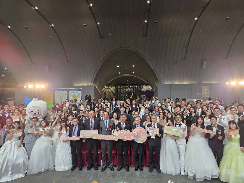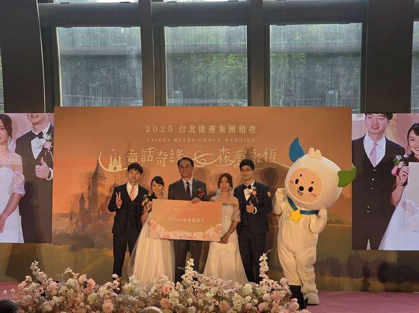 我們結婚啦!臺北捷運公司於(15)日在捷運大安森林公園站陽光大廳舉辦「2025臺北捷運集團婚禮」,16對新人在親友見證下互許終身。