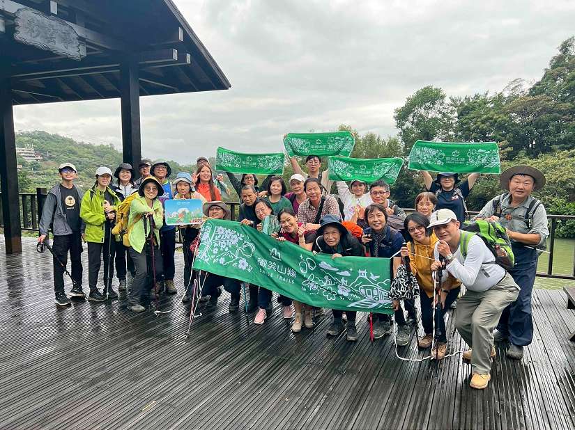 參與者手持活動旗幟與標誌,紀錄此次健行成果-圖/新北市政府提供