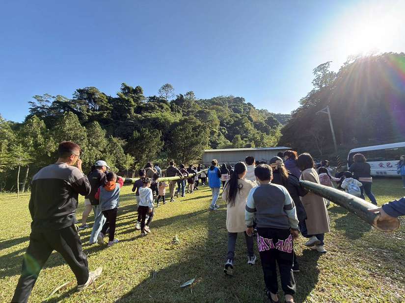 新竹縣竹東區社會福利服務中心昨(6日)辦理「大地親子FUN森日」家庭日活動,計有25組家庭,百餘人參加。活動特別結合竹東在地自然生態、客家文化共學及手作體驗,帶領弱勢家庭走進森林,透過協力鋸竹、野炊共食、自然創作等共作形式,不僅提供照顧者喘息支持,更有效協助參與的家庭在勞動與創作中,重新建立信任、修復親子情感與正向互動。