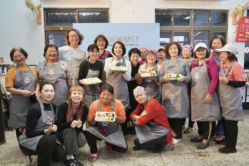 周縣長指出,過去常被形容是遠的要命的美術館,如今有越來越多藝術家選擇到此展出,今年特別邀請兩位日本料理職人—對中剛大、森本由美,與車城社區長輩合作,為屏東量身研發限定「海口食堂」料理,她也分享,下午走訪社區跟老師、長輩們一同製作便當時,選用雞肉、月桃葉、蘿蔔、牛港鰺、香草葉,以及社區自製的豆腐乳醬與豆鼓醬等食材,充分展現在地飲食特色。