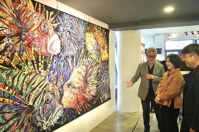 傳播處說,看海美術館曾是廢棄的候船室,如今在藝術的創意下重獲新生,本次邀請到活躍於國際、來自屏東的藝術家劉棟,他以數千片布料堆疊出大地、海洋等震撼視覺的風景,其層次與光影宛如繪畫般精密,遠看是色彩律動,近看則在纖維細節中流動情感,是本屆藝術季不可錯過的作品。