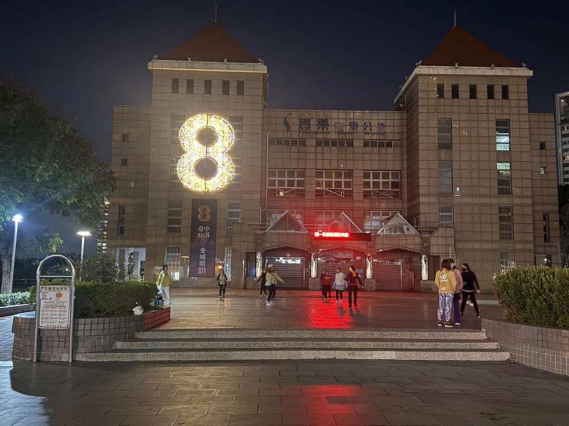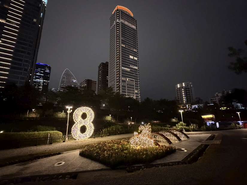 建設局說明,其中,秋紅谷公園以360度環湖視角呈現「8」字燈光意象,璀璨燈光與心之谷展館、觀景橋相互映襯,水面倒影交織出層次豐富的都會夜色;豐樂雕塑公園則於開闊廣場設置兩層樓高的「8」字大型燈飾,氣勢磅礡、視覺效果震撼,成為園區夜間焦點。