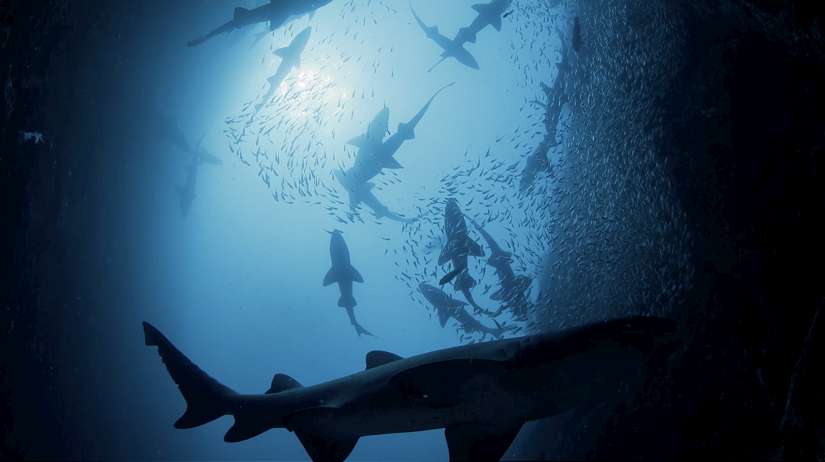 《鯊魚王國》鏡頭橫跨陽光灑落的熱帶珊瑚礁至幽暗深邃的深海 -圖/國立海洋科技博物館提供