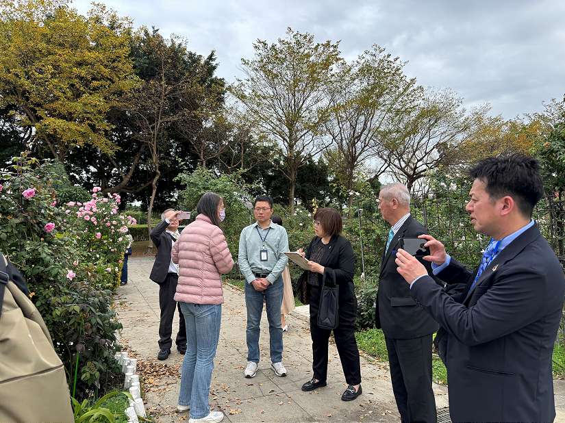 除參訪臺北玫瑰園外,礪波市貴賓亦前往臺北典藏植物園,聆聽志工導覽解說,認識台灣青莢葉、五葉松等臺灣原生植物,深入了解臺灣植物多樣性。此次交流也展現園藝技術已由傳統培育與病蟲害管理,提升至結合景觀美學的層次。
