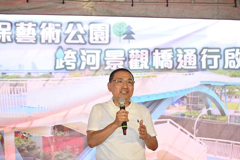 「五股環保藝術公園跨河景觀橋」(18)日正式啟用,新北市長侯友宜親自主持剪綵儀式,他表示,景觀橋啟用後,居民只要跨橋便可到達五股夏綠地的環保藝術公園,縮短至少1公里以上的路程,到公園運動、散步、遛狗或騎自行車更加便利,提升民眾安全及生活品質,為五股地區增添一處兼具功能性與美感的友善空間。