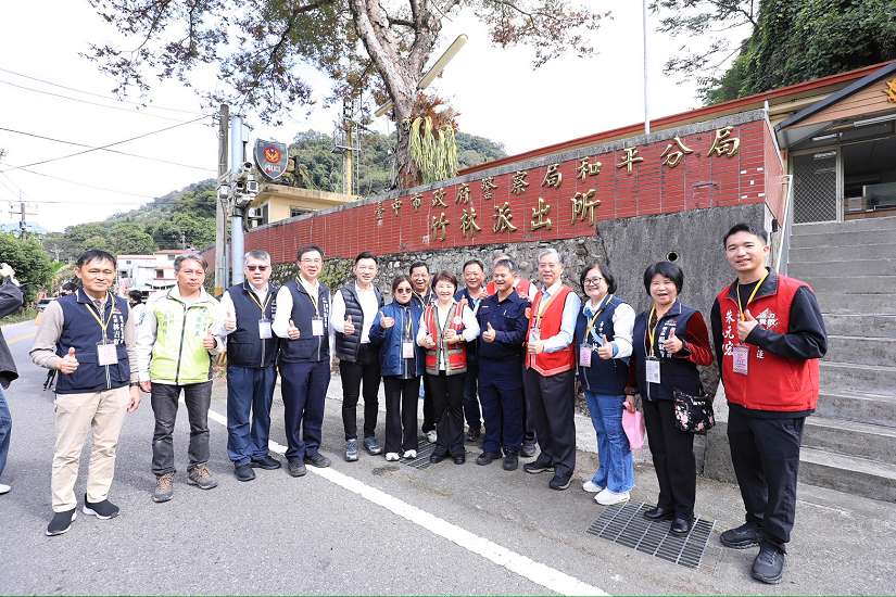 立法院副院長江啟臣表示,和平區是台中市幅員最大的行政區,地廣人稀、環境多變,警消同仁特別辛苦。雖然人力有限,但山區狀況繁多,從治安、交通,到山難救援,甚至偶有野生動物造成的突發狀況,都需第一時間處理;每位同仁負責的轄區遼闊,勤務量相當繁重。然而,和平區原鄉居民與長期在山上工作的朋友們多半純樸友善,使治安整體維持良好。他也感謝盧市長特別上山訪視,關心偏鄉學校與派出所,為堅守崗位的員警們加油、打氣。