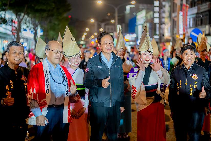 桃園市長張善政(12)日晚間前往中壢區出席「中壢仁海宮建宮200周年五朝福醮系列活動暨台日文化交流」活動。張市長表示,非常歡迎來自日本的阿波舞團好朋友蒞臨桃園,參與今年仁海宮建廟200週年慶典。阿波舞在桃園及臺灣皆享有高度知名度,深受市民喜愛,祝福舞團在臺灣各項演出行程一切順利、圓滿成功,共同深化台日文化交流。
