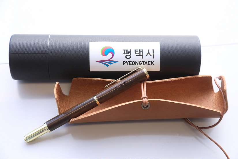 與南韓總統李在明去年8月贈送給美國川普總統的同款鋼筆-木質筆身上方特別刻有盧秀燕市長的韓文-圖/台中市政府提供