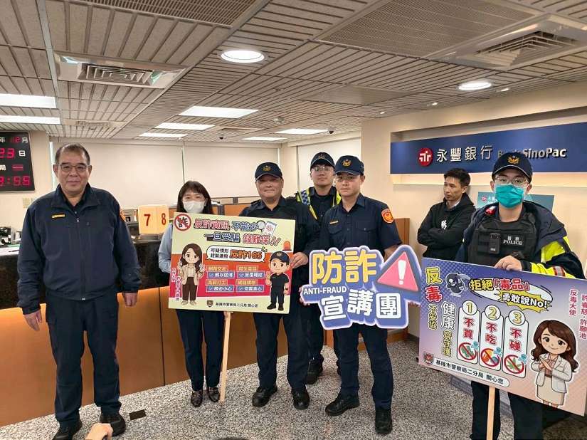 為提升金融從業人員及民眾防詐騙意識,基隆市警察局第二分局信六路派出所於23日,前往轄內各金融機構辦理防詐騙宣導,針對行員及洽公民眾加強說明近期常見詐騙手法與應對方式。