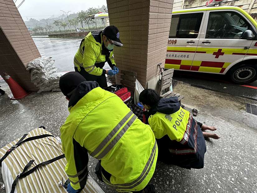 基隆市警察局第三分局百福派出所於115年3月4日中午12時許接獲民眾報案,稱在基隆市七堵區福二街17號1樓前發現一名老婦人倒臥路旁,神情痛苦,疑似身體不適,所長林宸霆及警員李庭安獲報後立即前往關心。
