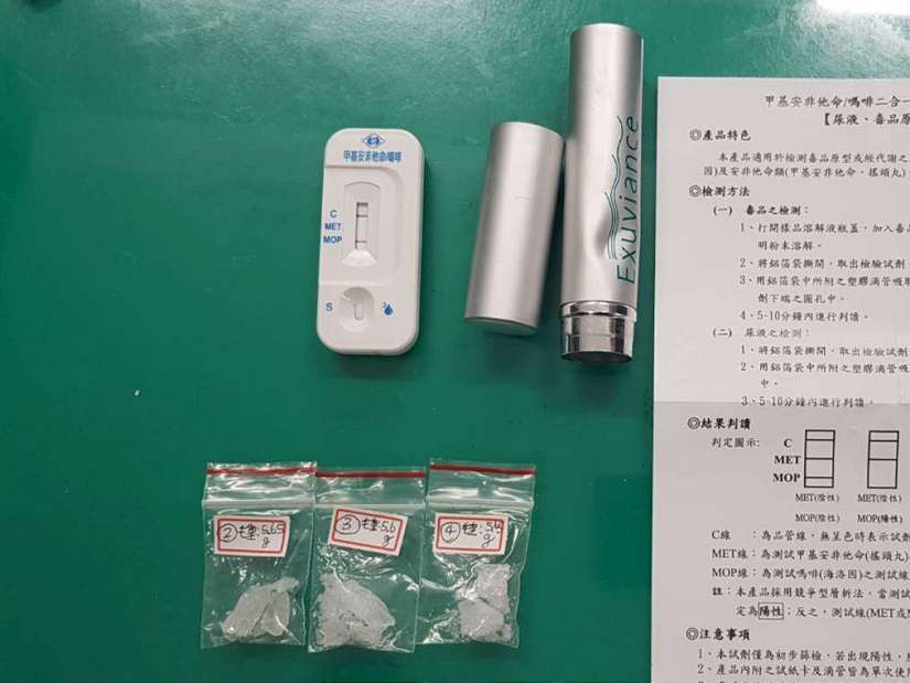 經警方當場檢視,丟棄之銀色鐵罐內含有第二級毒品安非他命3包(各約5公克),以及鐵盒內第二級毒品安非他命1包(約5公克)、毒品吸食器1組、磅秤1台;經使用安非他命毒品檢驗盒現場檢測,查獲之4包白色晶體均呈現第二級毒品「安非他命」陽性反應。經警方調查,男子購買毒品係用於上班提神吸食用。全案訊後依違反毒品危害防制條例現行犯,移送士林地檢署偵辦 。