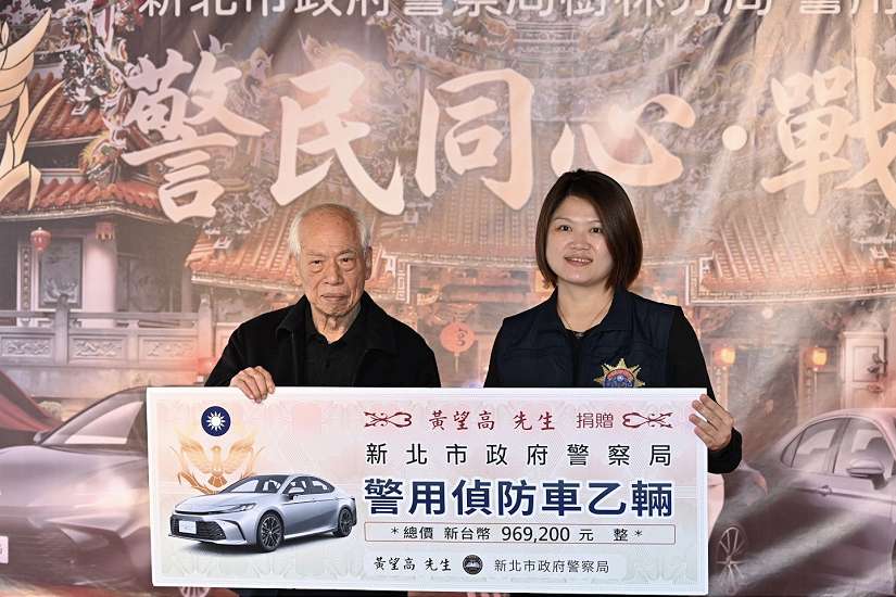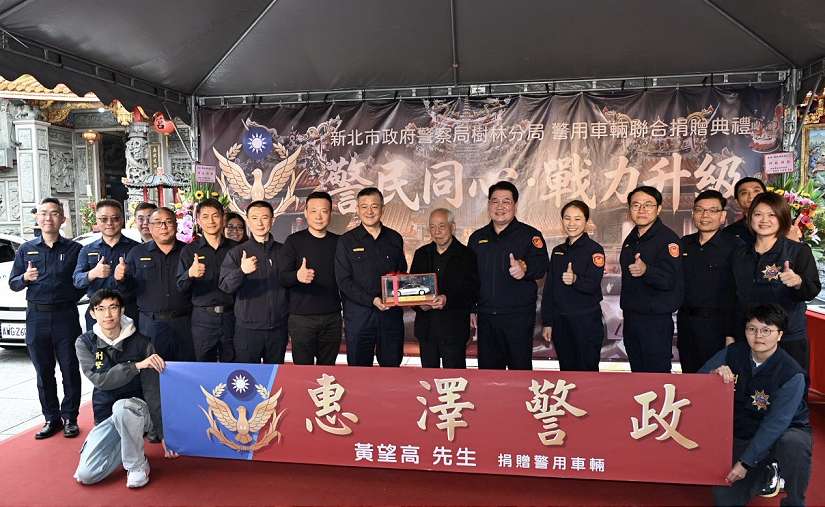 新北市政府警察局樹林分局於(19)日上午 10 時,於樹林鎮南宮前廣場舉行警用車輛捐贈典禮暨淨車祈福儀式。本次捐贈由財團法人新北市樹林鎮南宮、地方仕紳黃望高先生及榮喬振動機械股份有限公司共同發起,捐贈樹林分局巡邏車及偵防車共計 3 輛,以實際行動支持基層警政勤務。