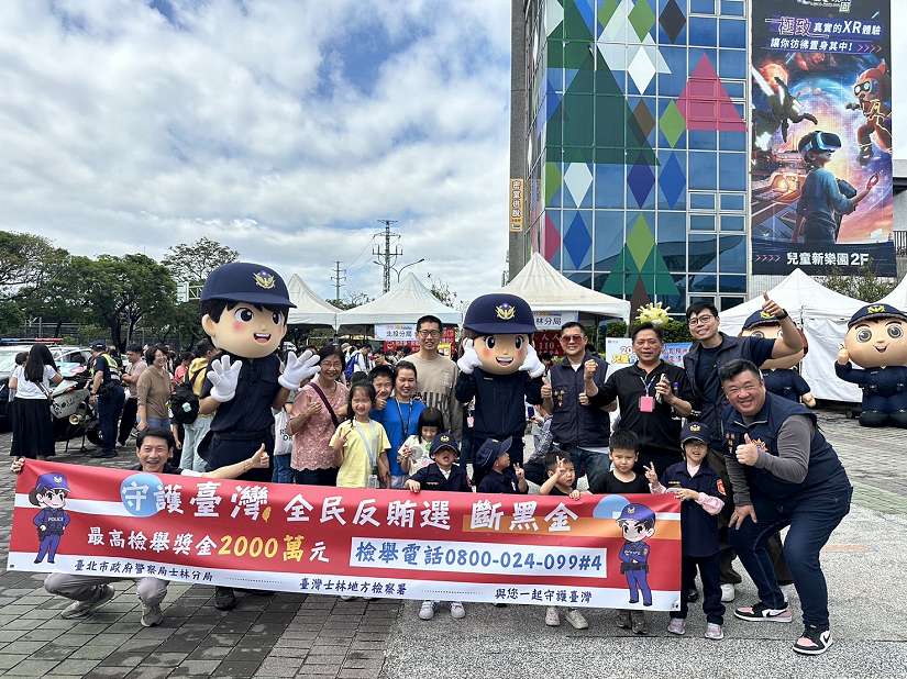 為強化115年地方公職人員選舉查察作為,提升民眾反賄選法治觀念,臺北市政府警察局士林分局結合臺灣士林地方檢察署推動反賄選宣導,於115年4月5日配合北捷遊憩公司於本轄兒童新樂園舉辦2026年兒童節「小小警消體驗」活動,設置宣導攤位,透過寓教於樂方式,向現場親子及市民傳達「拒絕賄選、勇於檢舉」之理念。