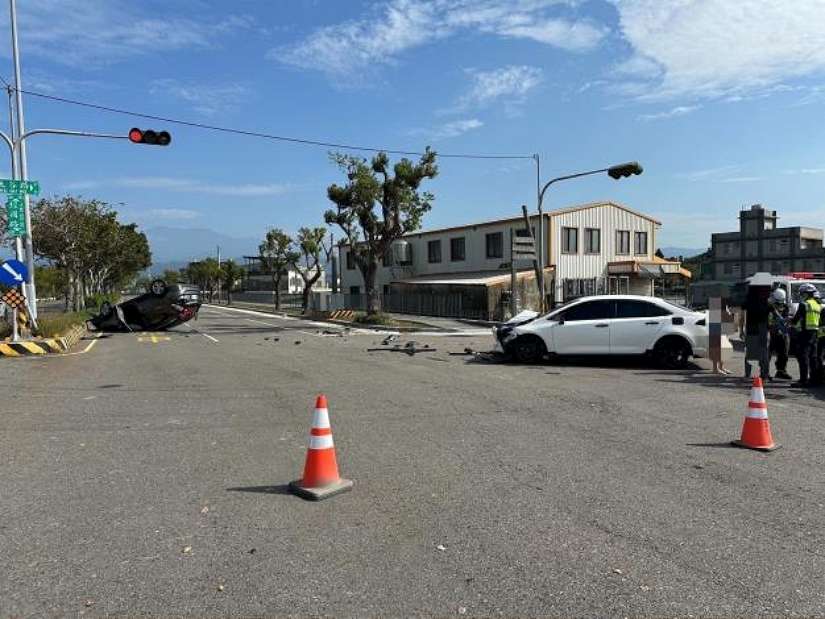 疑違反號誌管制   自小客路口發生碰撞後翻覆
