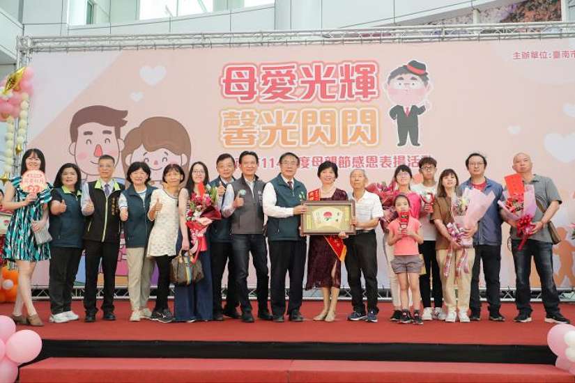 一年一度的母親節即將到來,台南市政府為感謝所有為家庭、社會付出心力的母親,今(4)日在永華市政中心辦理「114年度母愛光輝 馨光閃閃母親節感恩表揚活動」,由台南市長黃偉哲親自表揚57位母親代表,隨後也抽出由社會局準備的三枚金戒指,並現場加碼再抽出三台腳踏車,祝福媽媽們母親節快樂。