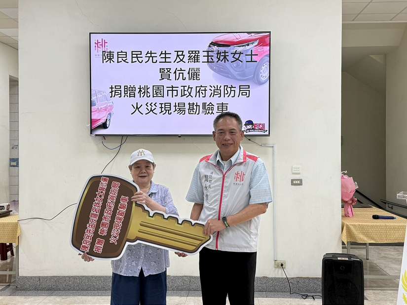 桃園市政府消防局於今(19)日舉行火災現場勘驗車捐贈典禮,由消防局局長龔永信代表受贈,場面盛大隆重;羅玉妹女士常看到新聞消防車或救護車的畫面,體認消防工作相當辛苦,隨著消防局救災勤務日益繁重,車輛需求亦隨之提高,羅玉妹女士感念消防同仁辛勞,秉持著取之於社會,用之於社會,捐贈火災現場勘驗車1輛予消防局火災調查科使用。