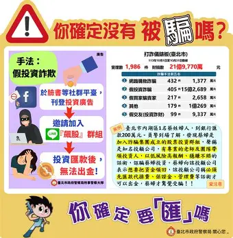 縣政府指出,為協助民眾識別詐術,「165全民防騙網」( https://165.npa.gov.tw ),提供詐騙手法解析及預防策略,還能讓市民隨時檢舉可疑的廣告或行為,共同維護社會安全。民眾也可透過「165防詐儀表板」(  https://165dashboard.tw/ ),查詢全國各詐騙案件數據、熱點預警和手法趨勢等資訊,隨時掌握詐騙情況,並學習如何防範各種詐騙手段。
