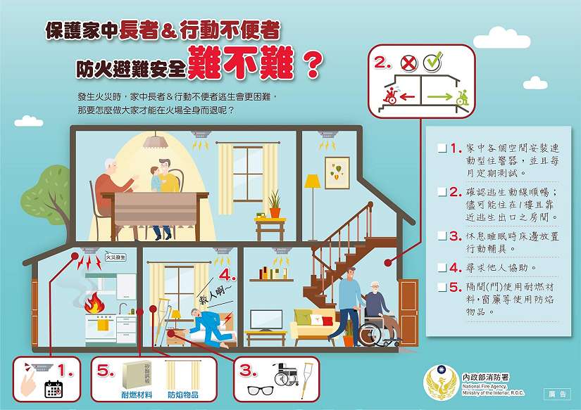 護家中長者&行動不便者防火要訣-圖/基隆市政府提供