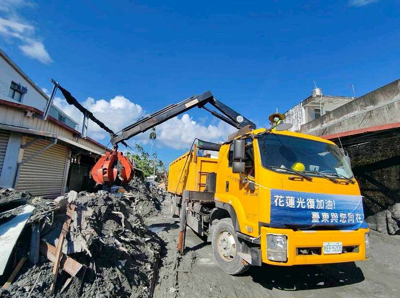 臺東出動抓斗車、清溝車馳援  攜手花蓮投入災區環境復原