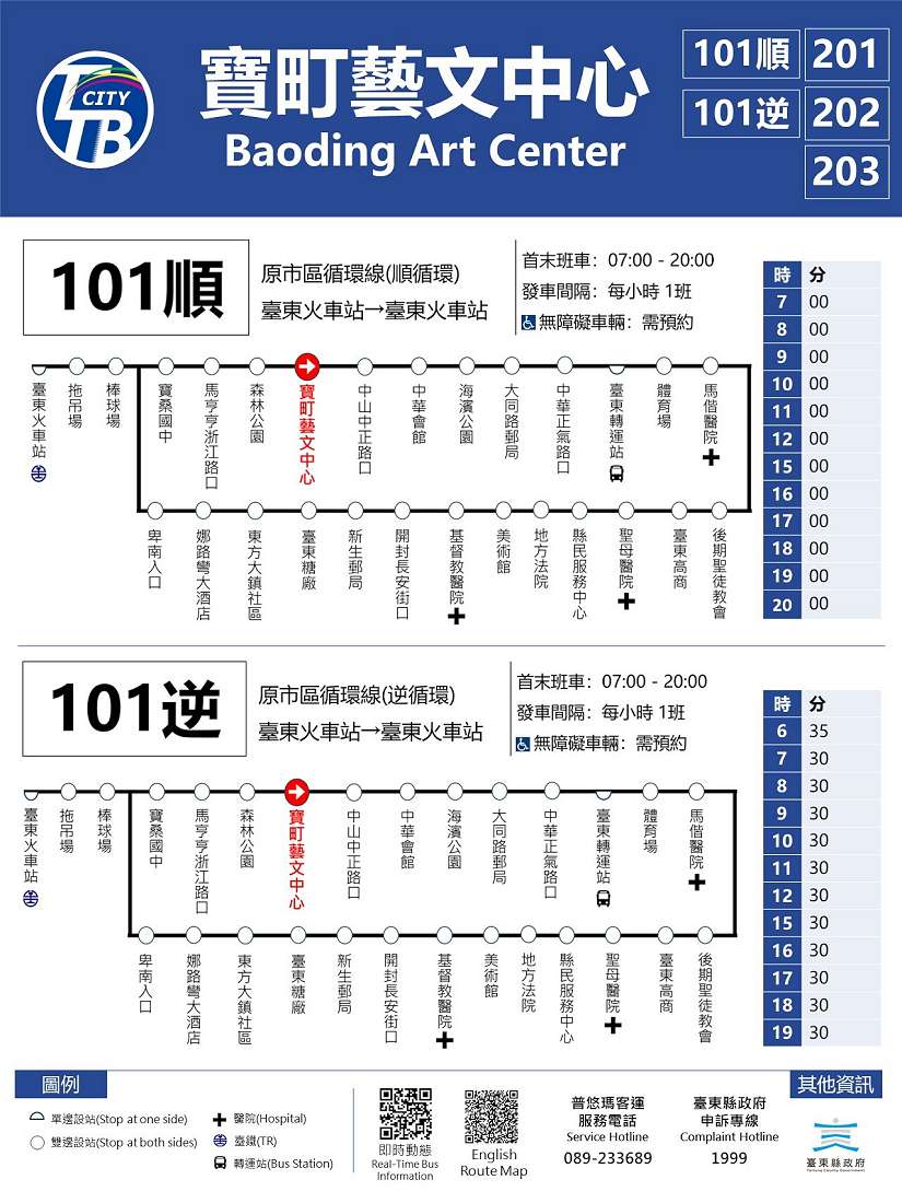 臺東縣市區公車即將於11月1日起正式改版,縣府也同步公布完整新時刻表與更新後路線圖,其中,原「市區循環線、陸海空快線A線、陸海空快線B線」將分別改為 「101線、201線、202線」,並新增往來大豐地區的「203線」,車身標示、站牌將自10月底開始陸續更新,民眾屆時可直接依新編號辨識乘車方向。