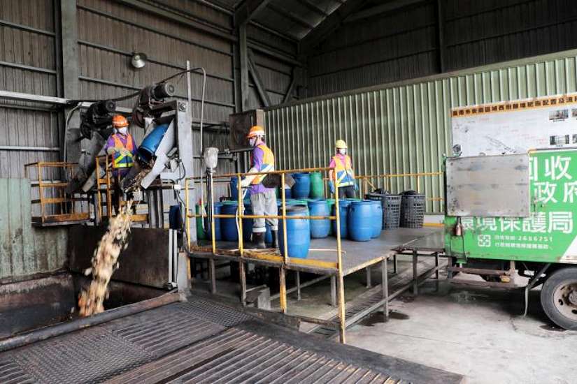 黃偉哲表示,台南市早於108年起陸續建置兩座廚餘高速發酵廠,每日合計可處理近40噸廚餘。該系統採密閉高溫自動化發酵程序,可有效降低氣味、避免露天曝曬造成環境影響,並將廚餘轉化為經農業部認證的有機肥料,實現廚餘資源化與循環再利用的目標。