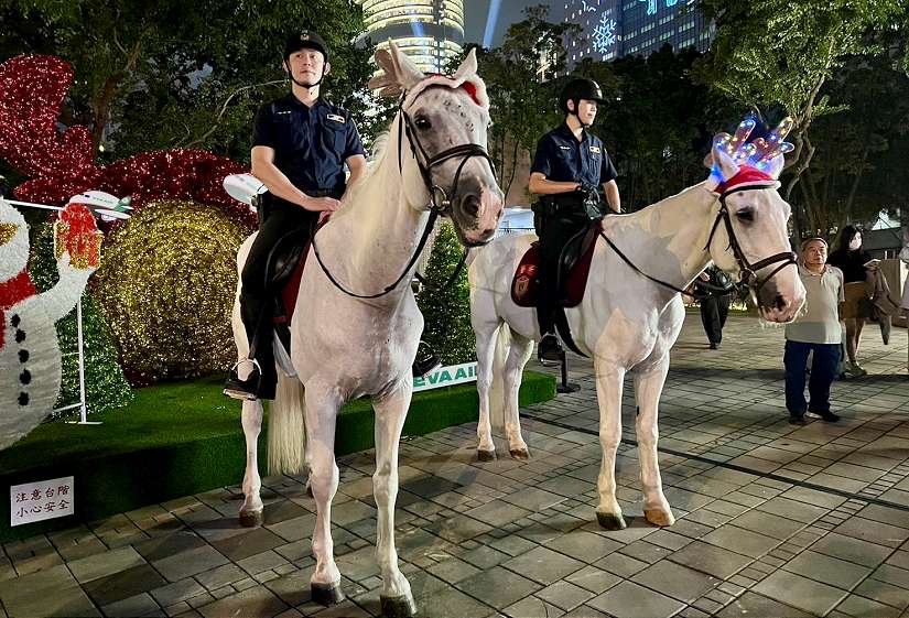 新北市政府警察局透過高科技設備與專業警力的協同運作,全面護航耶誕城安全,展現科技警政的強大力量。無論是利用無人機進行空域監控,還是警犬隊執行偵爆安檢,或由騎警隊沿主要道路與人潮密集區巡邏,警方都在每個細節中守護市民,讓每位參與民眾能安心、愉快地享受2025新北耶誕城首日開城盛會。
