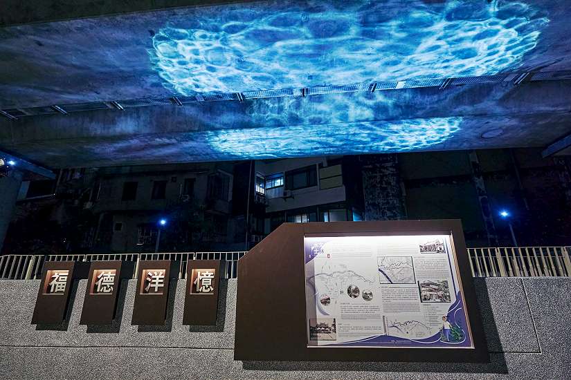 「福德洋憶」跨橋:透過水波紋投影至橋面的光影變化,象徵過去水文士林記憶的重現-圖/台北市政府提供