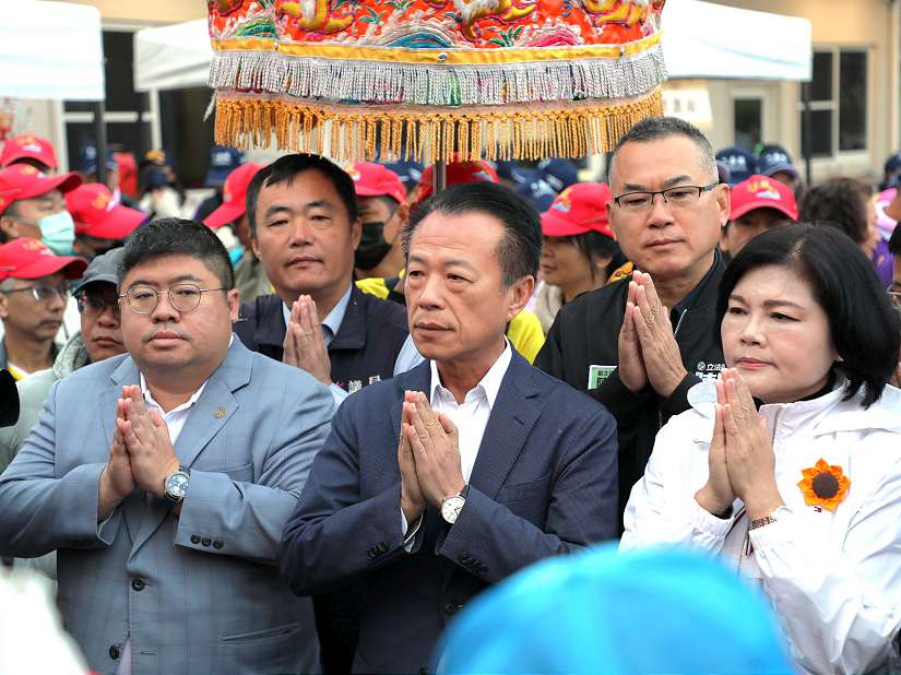 雲林六房天上聖母睽違10年,再度來到嘉義縣大林鎮延香賜福。13日晚間,六房媽駐駕在新建啟用的福德爺文武財神廟,今(14)日清晨,嘉義縣長翁章梁、雲林縣長張麗善、立法委員蔡易餘、丁學忠、嘉義縣議員吳思蓉、江志明、大林鎮長許有疆等貴賓皆親臨現場,隨香參拜,恭迎六房媽起駕。